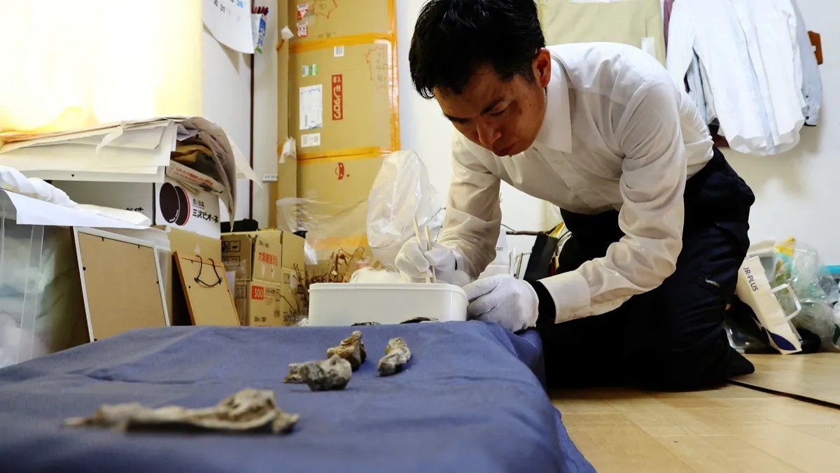 وقال ريبون كايو، الباحث في جامعة هيروشيما الذي يزور نينوشيما بانتظام للبحث عن الرفات: "حتى يحدث ذلك، لم تنتهِ الحرب بالنسبة لهؤلاء الناس".