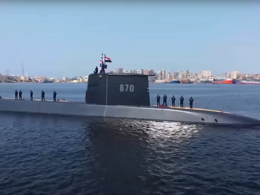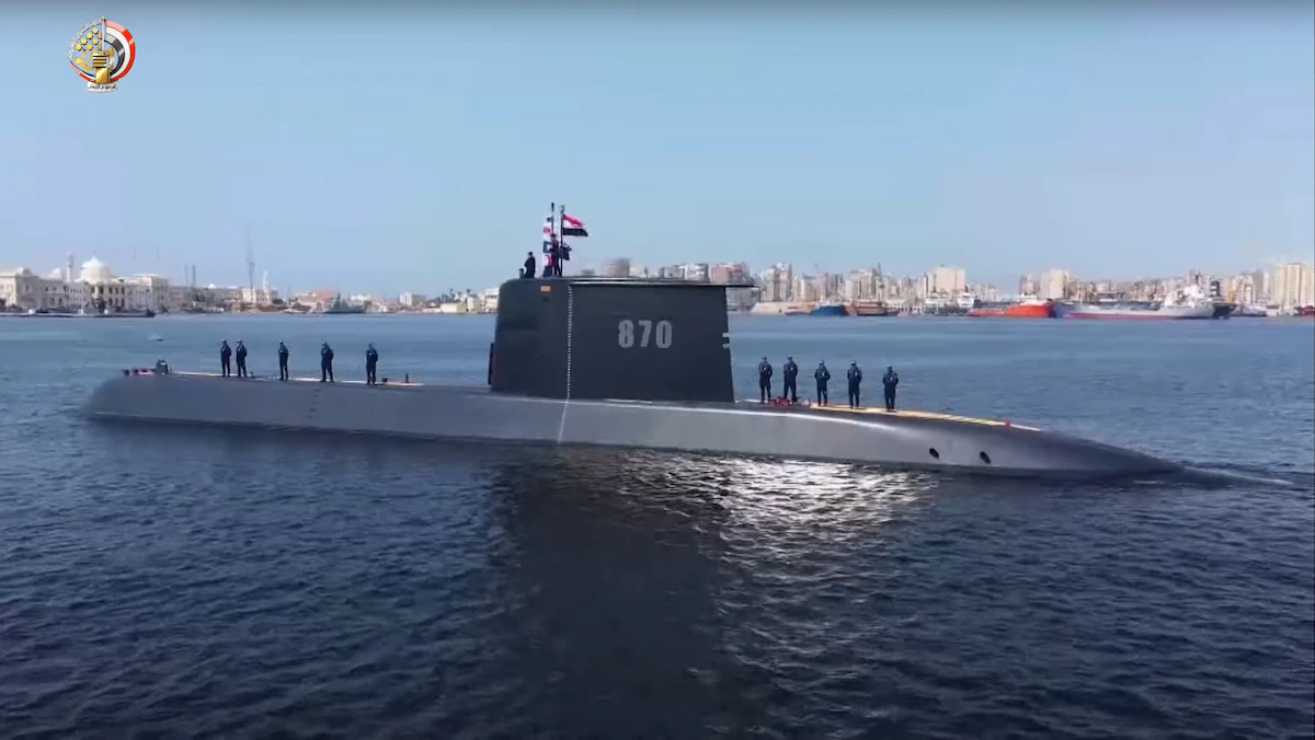 أعلنت القوات المسلحة المصرية، الاثنين، وصول غواصة ألمانية S44 من طراز (209/1400) إلى قاعدة الإسكندرية البحرية، قادمة من ميناء كيل الألماني بعد إبحارها بطاقمها المصري
