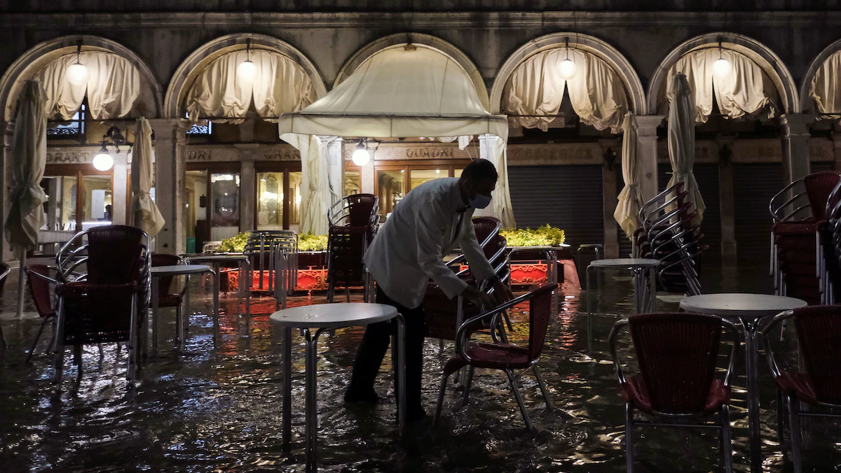غمرت مياه فيضانات صيفية غير معتادة، ساحة القديس مرقس الشهيرة في مدينة البندقية الإيطالية، ووصل منسوبها خلال الليل إلى ما يصل إلى متر.