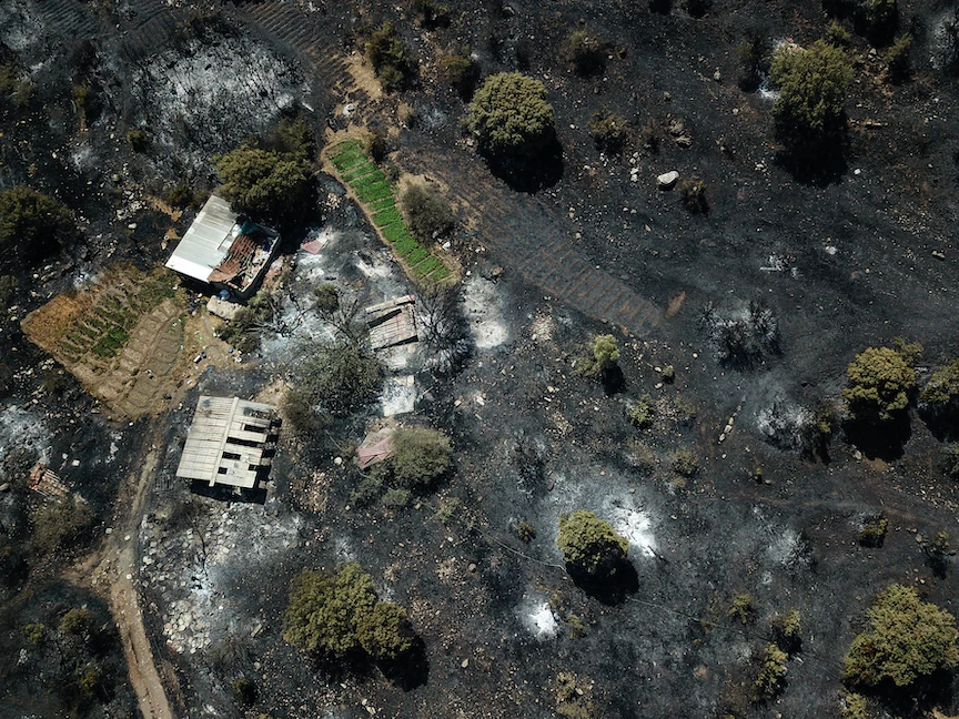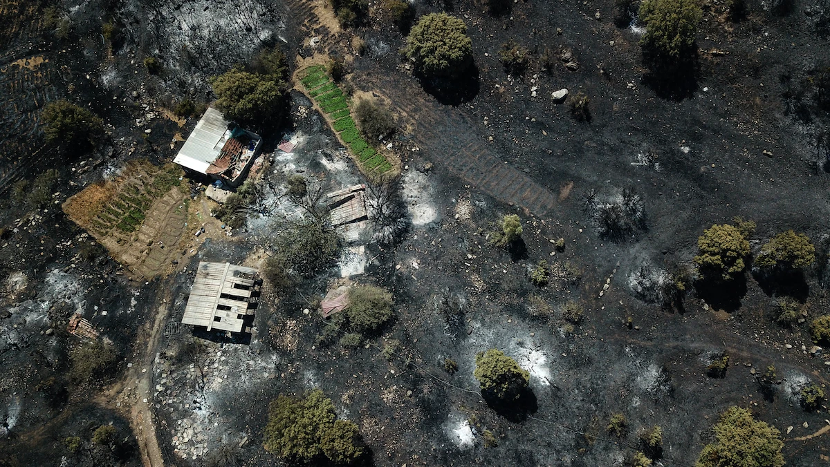 صورة جوية لمنطقة محترقة في إحدى ضواحي مدينة مارماريس التركية - 3 أغسطس 2021. - AFP
