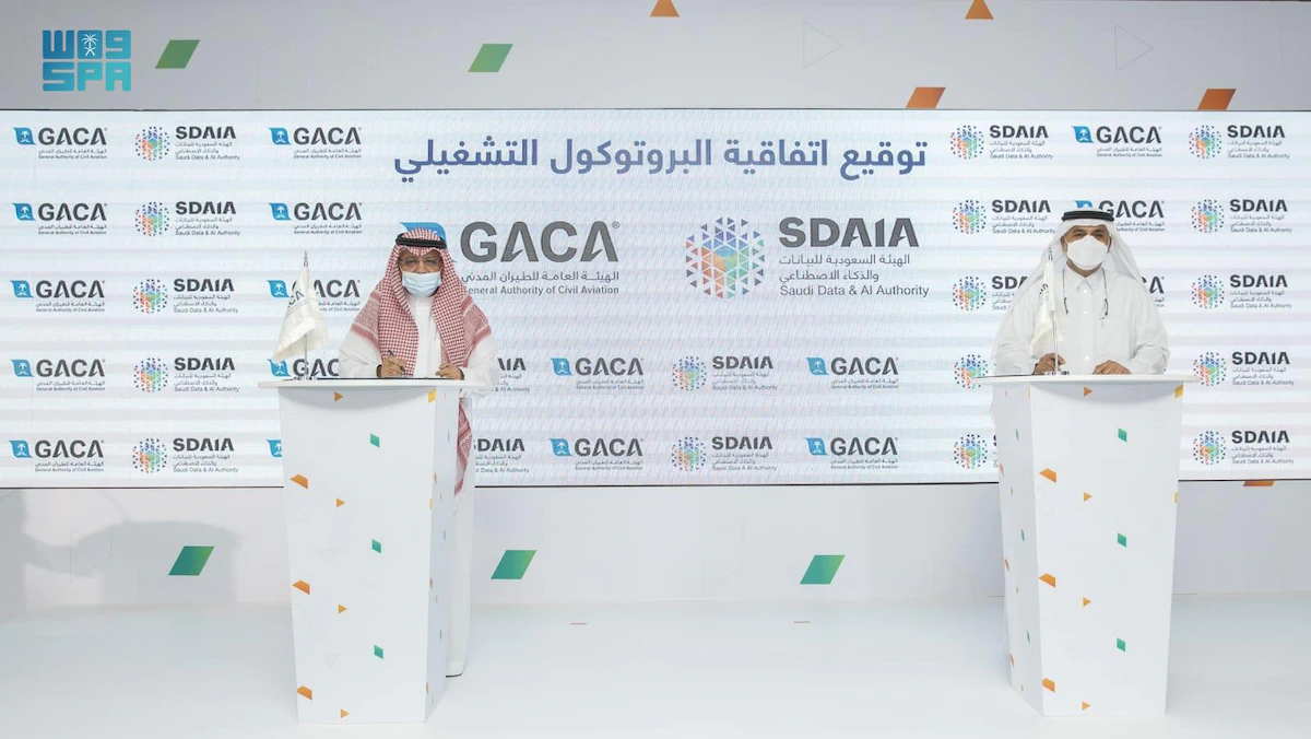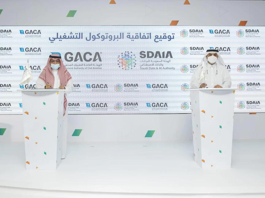 وفي السياق ذاته، وقعت الهيئة السعودية للبيانات والذكاء الاصطناعي "سدايا"، والهيئة العامة للطيران المدني الأربعاء ، اتفاقية البرتوكول التشغيلي التي تهدف إلى وضع إطار عام لمجالات التعاون بين الطرفين.