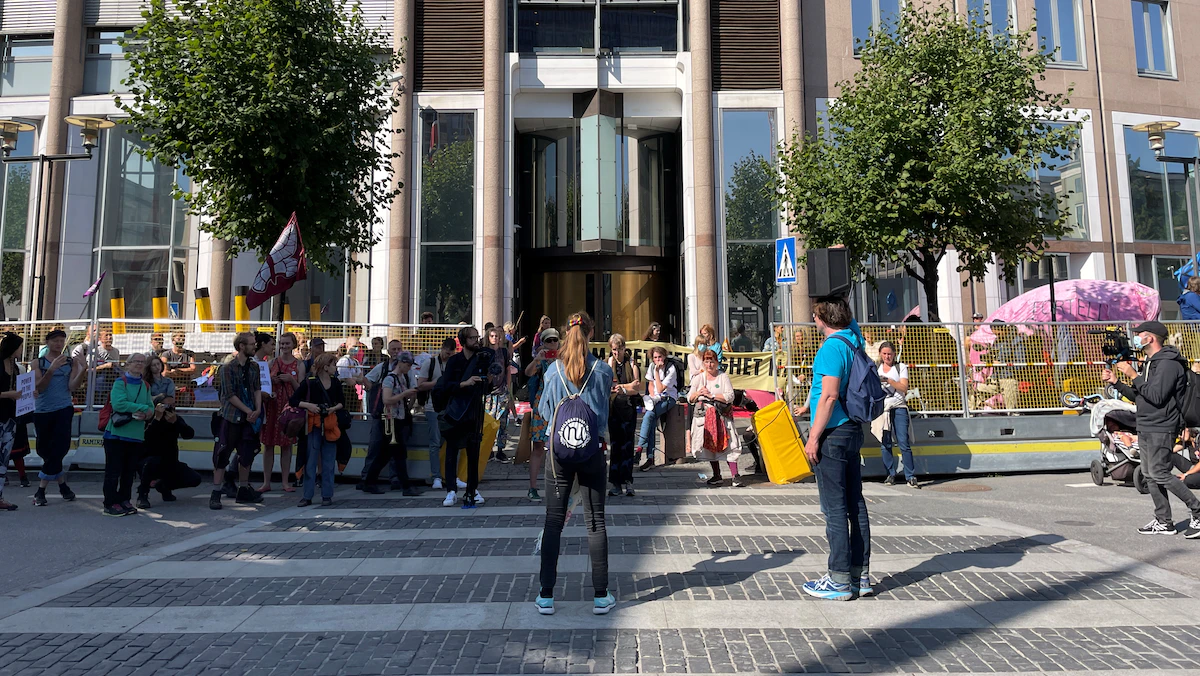 منع ناشطون من جماعة "إكستنكشن ربيليون" أو "تمرد على الانقراض"، في أوسلو، الوصول إلى مقر وزارة الطاقة النرويجية، الاثنين، ضمن حملة احتجاج مناهضة لقطاع النفط تستمر 10 أيام، في الدولة الإسكندنافية.