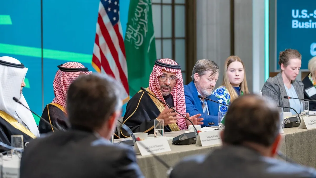 ونقلت وكالة الأنباء السعودية (واس) عن الخريّف تأكيده، خلال الاجتماع الذي انعقد بمقر الغرفة التجارية الأميركية، على "متانة العلاقات الاستراتيجية التي تربط بين المملكة والولايات المتحدة، وتمتد لأكثر من 8 عقود، حيث بنيت على الرؤى الطموحة والمصالح المشتركة لكلا البلدين"، مبيناً أن "الروابط الاقتصادية الثنائية انعكست على نمو الشراكات الاستثمارية النوعية، وأسهمت في الحضور البارز للشركات الأميركية في المملكة التي بلغ عددها ألف و300 شركة".