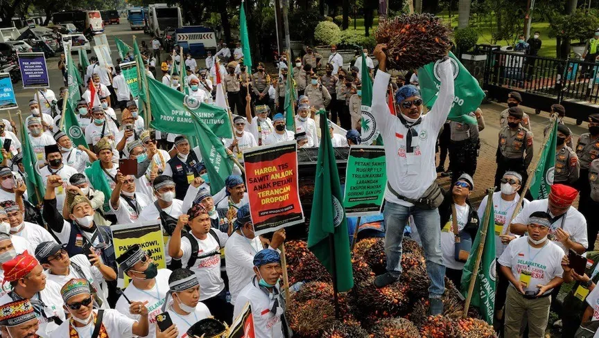 شارك سكان من مقاطعة رياو، المنتجة لزيت النخيل في إندونيسيا، الخميس، في احتجاج ضد استيلاء قوة مهام حكومية معنية بالغابات على مزارعهم، وقال أحد منظمي الاحتجاج إن الآلاف شاركوا فيه، وفق "رويترز".