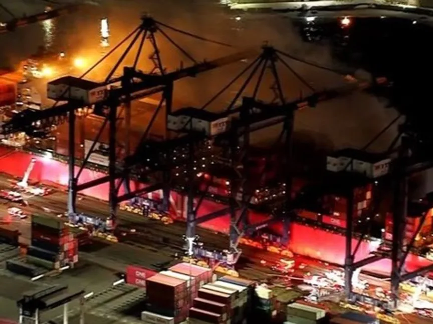 وأعلنت شرطة الطرق السريعة في كاليفورنيا إغلاق جسر فينسنت توماس، الممر الرئيسي إلى أرصفة الميناء، حتى إشعار آخر، وحذرت السلطات قائدي المركبات من الاقتراب واتباع طرق التحويل.