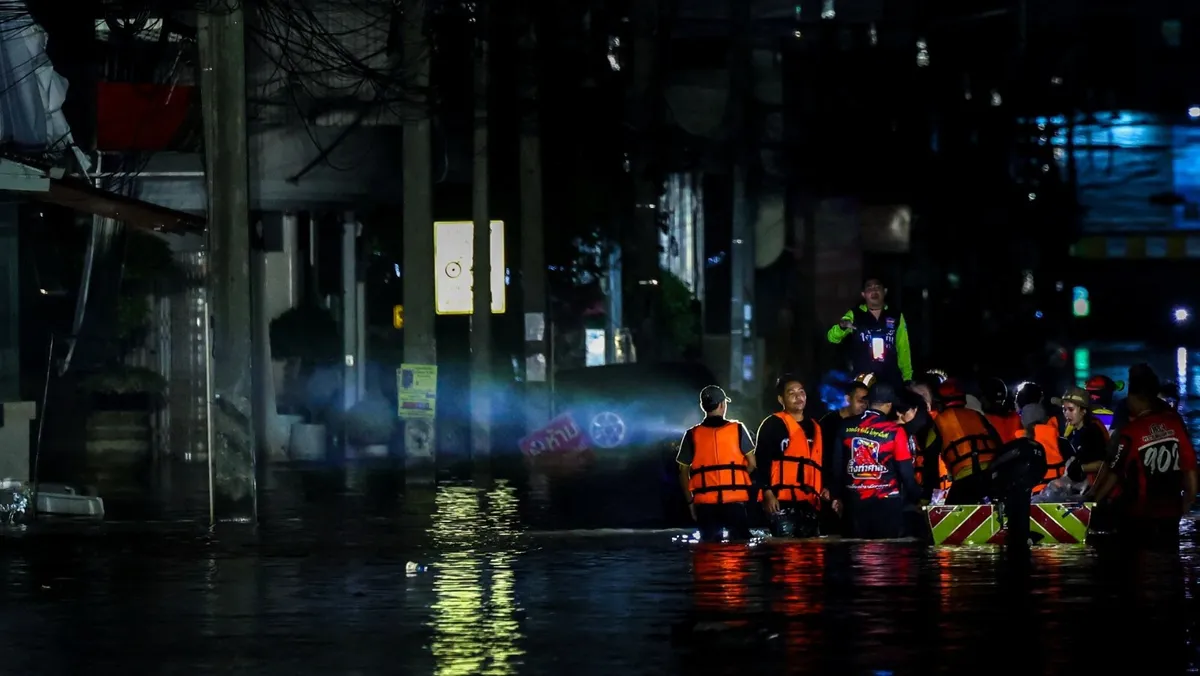 وهطلت أمطار غزيرة استمرت 3 أيام مطلع الأسبوع الماضي، لتُغرق مدينة هات ياي، المركز التجاري لجنوب تايلندا، وتُعطّل عمل المستشفيات، وتُحاصر الآلاف فوق أسطح المباني. وفي يوم الجمعة وحده، سجّلت المدينة 335 ملم من الأمطار، في أعلى معدل يومي لها منذ 300 عام.