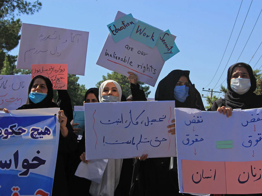 نظمت عشرات النساء مظاهرة في مدينة هرات، غرب أفغانستان، للمطالبة بحق العمل، في ظل حكم حركة طالبان التي تواجه عراقيل اقتصادية كبرى وارتياباً من قبل الشعب.