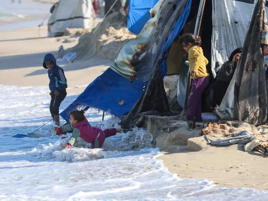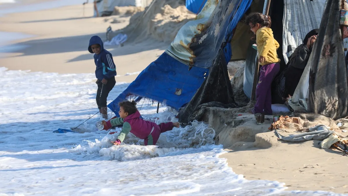 ويواجه النازحون في غزة وضعاً بالغ الصعوبة بسبب منخفض جوي عاصف تصاحبه رياح شديدة وأمطار غزيرة، بالتزامن مع انخفاض درجات الحرارة إلى حد الصقيع.