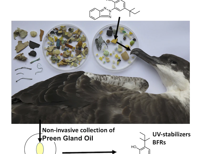 كان الهدف من الدراسة فهم التهديد المنتشر للتراكم البلاستيكي للإضافات الكيميائية على الطيور البحرية عالمياً. لذا فقد قام الباحثون بتحليل الزيت من الغدة الخضراء، الموجودة فوق الذيل مباشرة، من 145 طائراً بحرياً في 16 موقعاً مختلفاً حول العالم.
