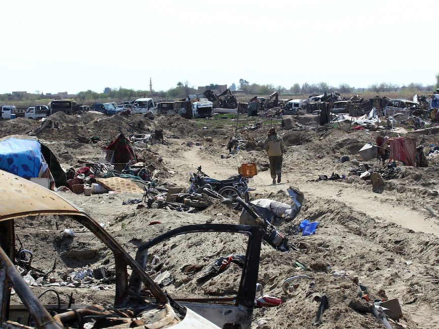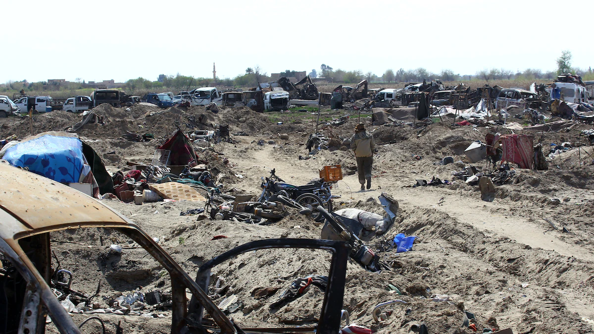 وبين الخيام المؤقتة والمركبات المكسوة بالرصاص والمخابئ المحفورة يدوياً كان هناك عشرات الآلاف من النساء والأطفال، بعضهم كانوا هناك طواعية، لكن البعض الآخر لم يكن كذلك.