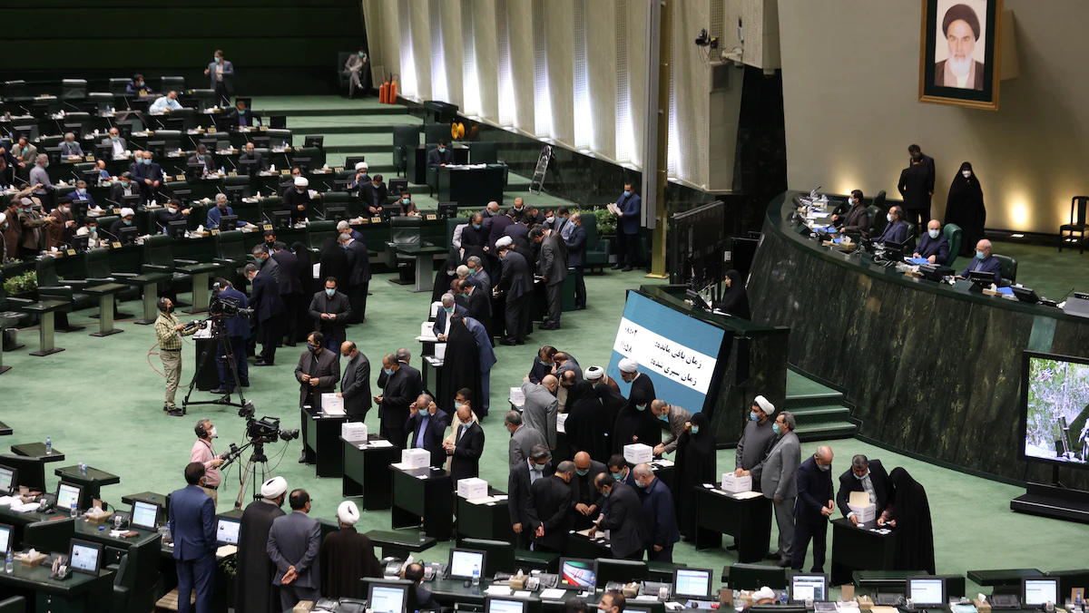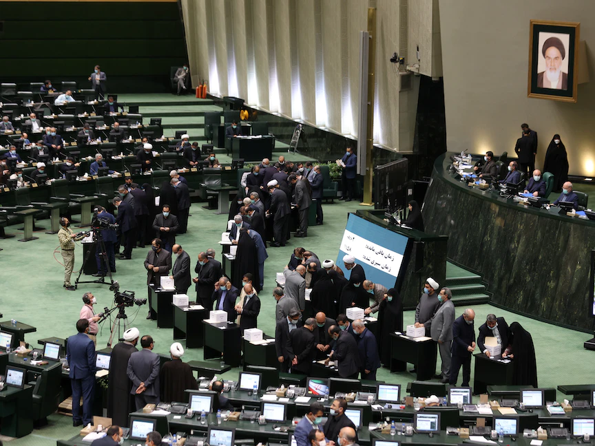 أعضاء البرلمان الإيراني يشاركون في تصويت على الثقة بحكومة الرئيس إبراهيم رئيسي في مجلس الشورى بطهران، إيران- 25 أغسطس 2021. - REUTERS