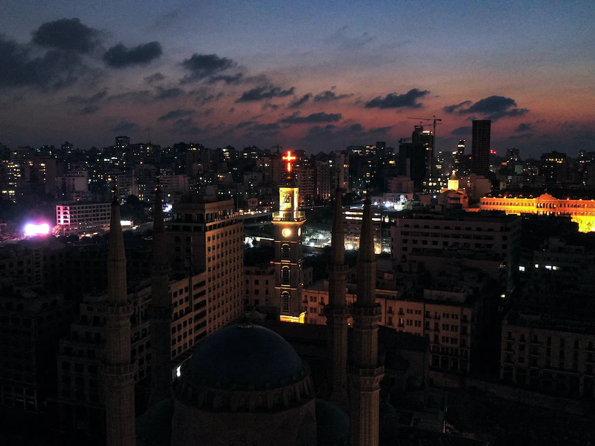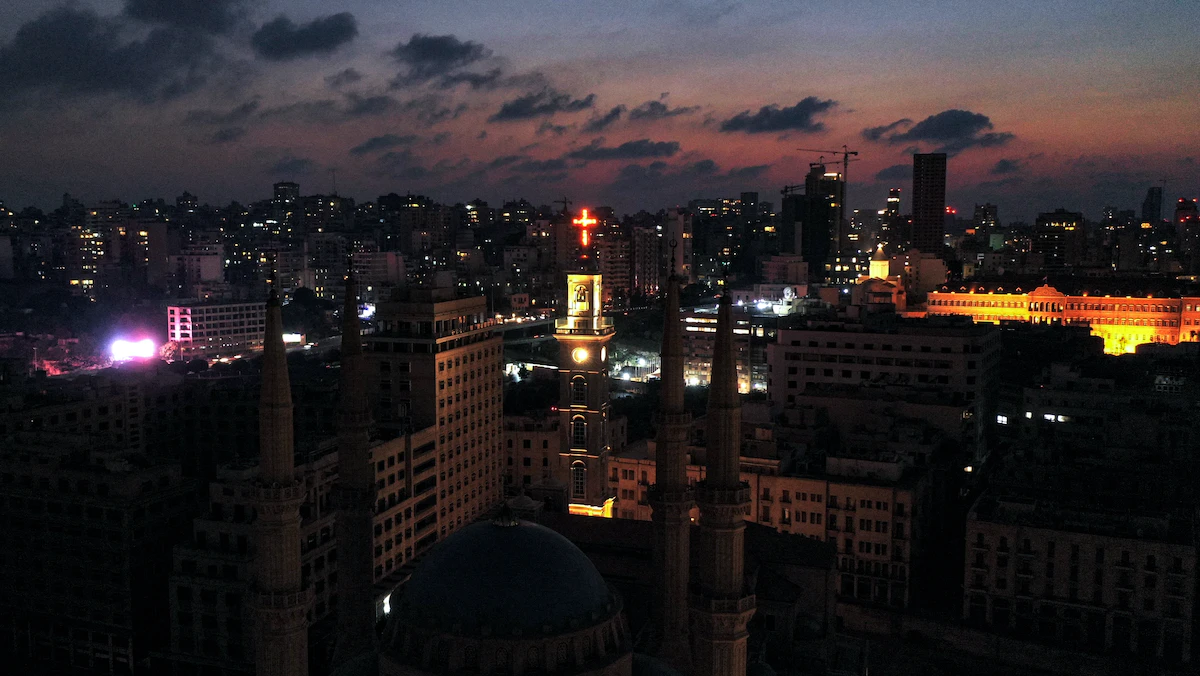 مشهد العاصمة اللبنانية بيروت في الظلام أثناء انقطاع التيار الكهربائي. - AFP