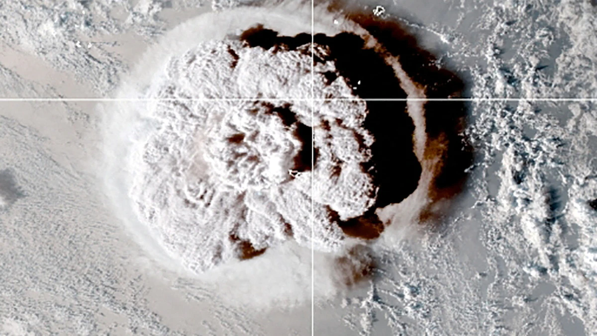 وأظهرت صور لافتة ملتقطة من الفضاء، نهاية الأسبوع الماضي، لحظة ثوران بركان هونغا تونغا-هونغا هاباي على جزيرة غير مأهولة من جزر تونغا مع سحابة ضخمة من الدخان والرماد تلتها مباشرةً موجات مد.