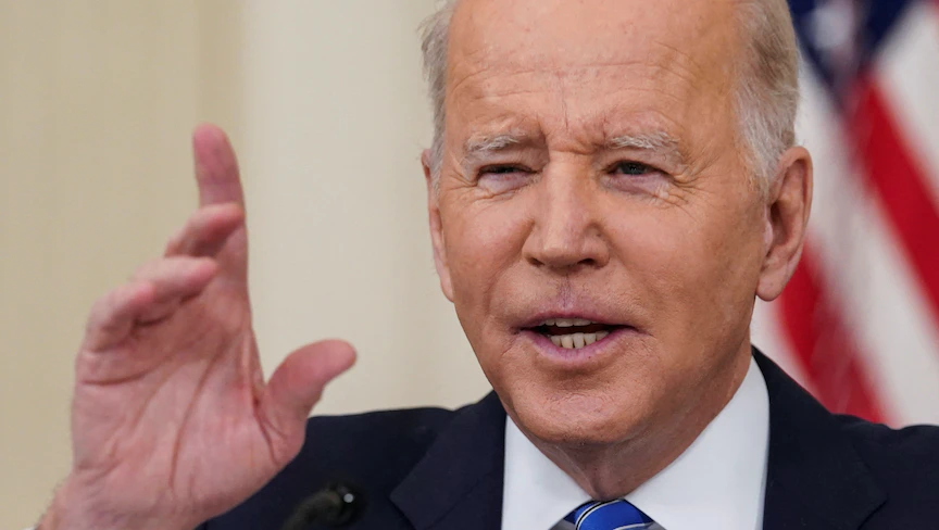 الرئيس الأميركي جو بايدن خلال لقائه مع الرؤساء التنفيذيين للشركات الأميركية الكبرى في البيت الأبيض في واشنطن - 26 يناير 2022 - REUTERS