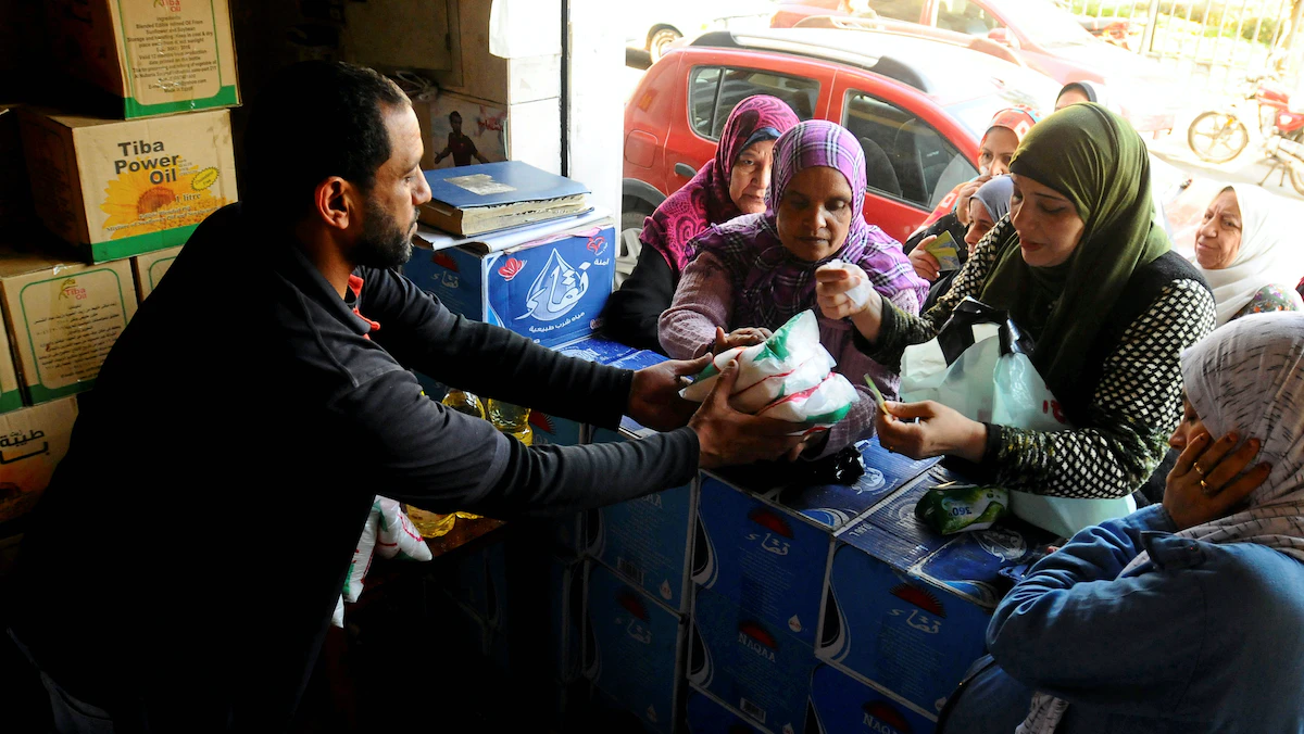 مصريون أمام جمعية تعاونية في العاصمة القاهرة - REUTERS
