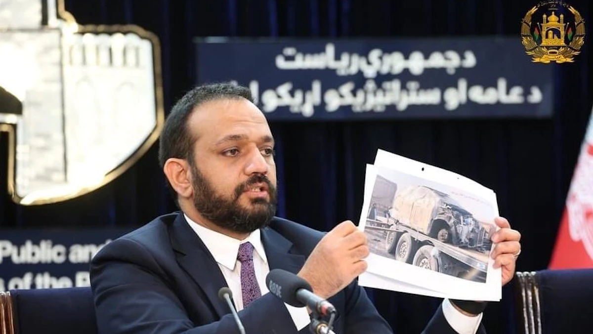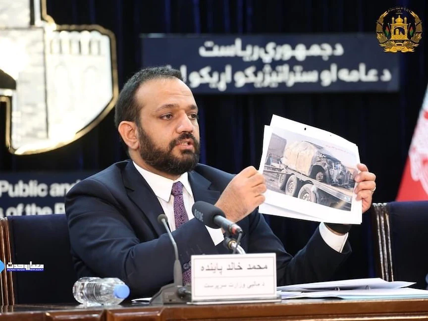 وزير المالية الأفغاني السابق خالد بايندا خلال مؤتمر صحافي في كابول