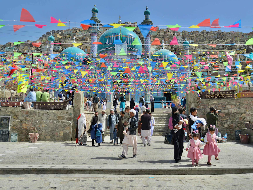 وغالباً ما يتنزه الناس ويعزفون الموسيقى في الهواء الطلق، وتقام مراسم في مسجدين أحدهما في كابول، والآخر في مزار الشريف.
