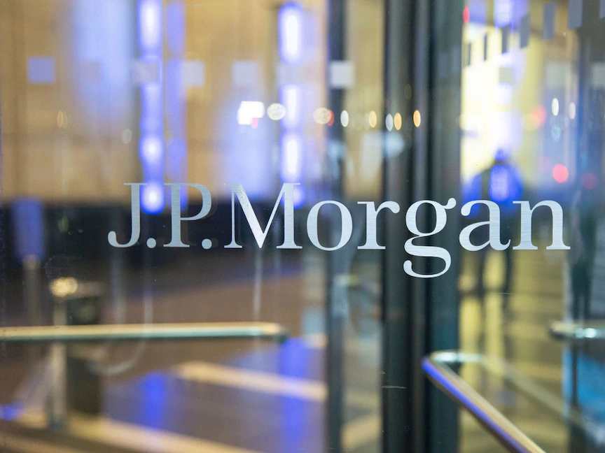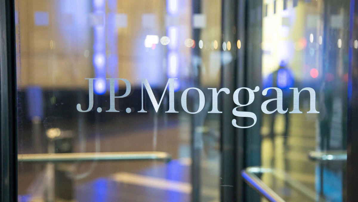 شعار جي بي مورغان عند مدخل المؤسسة. - بلومبرغ