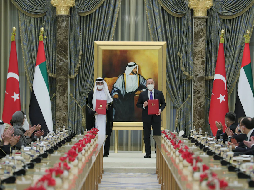 يُذكر أن العلاقات التركية الإماراتية دخلت مرحلة جديدة مؤخراً عقب تبادل الزيارات بين زعيمي البلدين، حيث أجرى الرئيس التركي رجب طيب أردوغان زيارة رسمية للإمارات، في فبراير الماضي، وجرى خلالها التوقيع على 13 اتفاقية تشمل مجالات الاستثمار والدفاع والنقل والصحة والزراعة.
