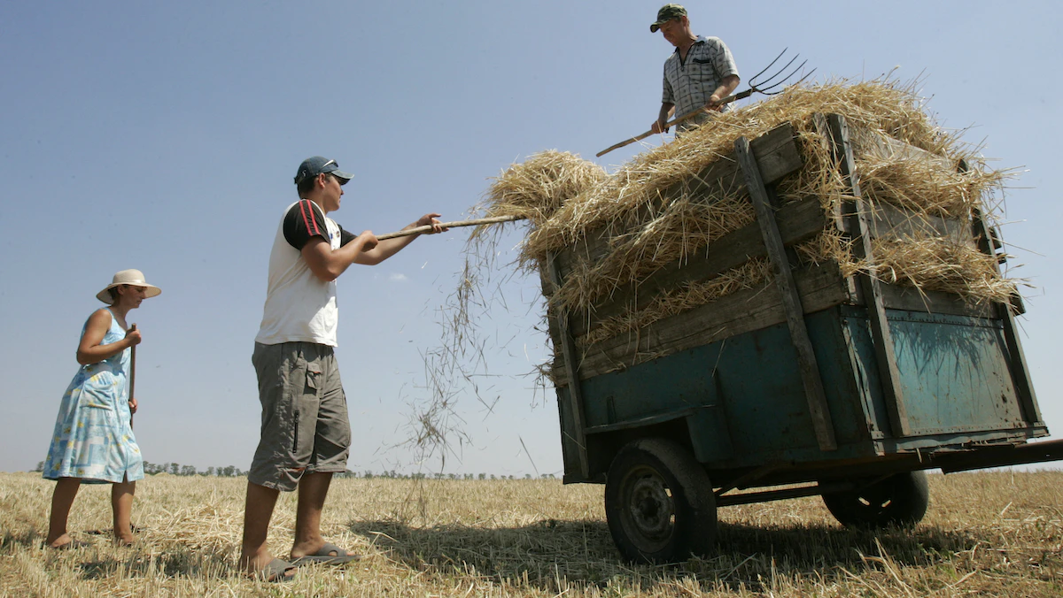 مزارعون أوكرانيون يجمعون محصول القمح في منطقة خيرسون في جنوب أوكرانيا. 15 يونيو 2007 - REUTERS