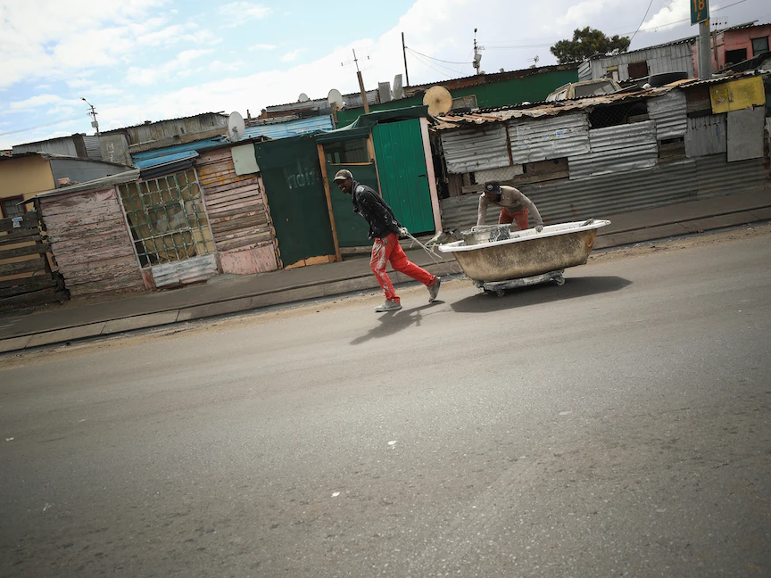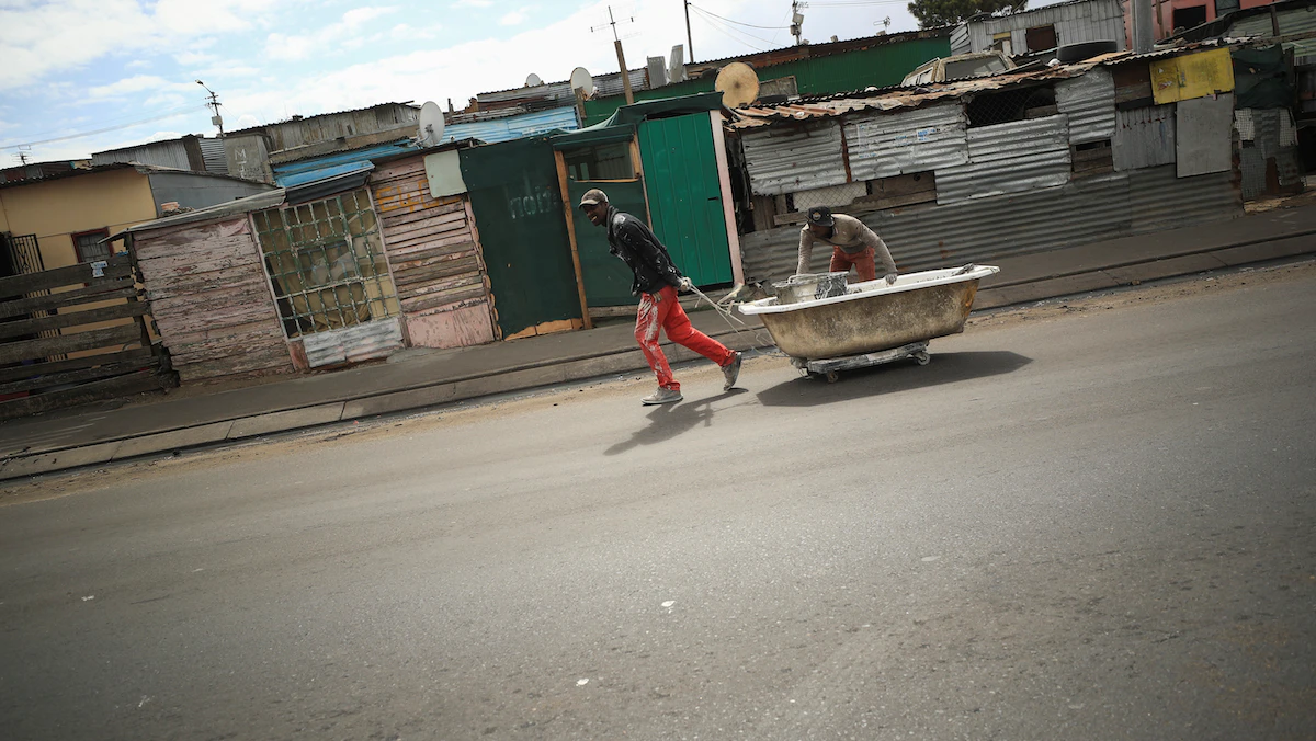 وفيما يغتسل رواد شواطئ كايب تاون الرائعة بالمياه لإزالة الرمل عن أقدامهم، يعبّر شادراك موجريس عن امتعاضه وهو يملأ برميله بالماء، إذ لا مياه في مراحيض منزله.