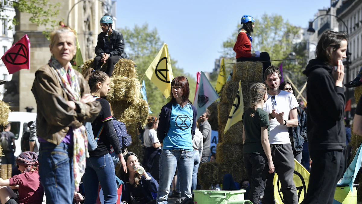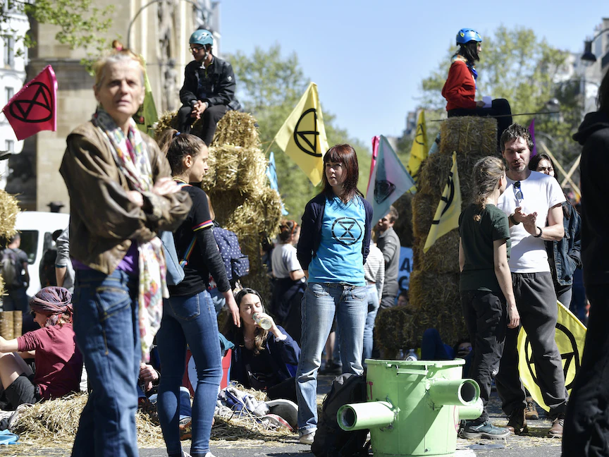 أغلق المئات من نشطاء حركة "تمرد ضد الانقراض" البيئية، السبت، طرقاً رئيسة وسط باريس ولندن، احتجاجاً على "تقاعس" زعماء العالم في مكافحة تغير المناخ.