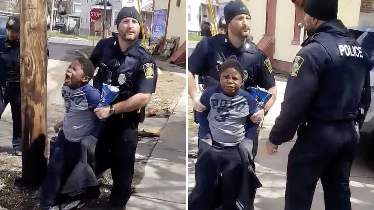 والفيديو الذي وصل عدد مشاهداته الى أكثر من خمسة ملايين على تويتر، يظهر الصبي باكياً، ويداه خلف ظهره بينما يقتاده ضابط شرطة أبيض من قسم شرطة سيراكيوز إلى سيارة دورية.