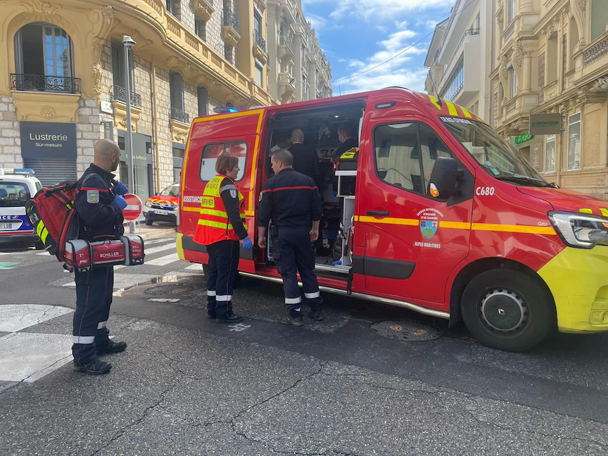 مسعفون في محيط كنيسة سانت بيير دارين في نيس- 24 أبريل 2022 - Twitter/@ECiotti
