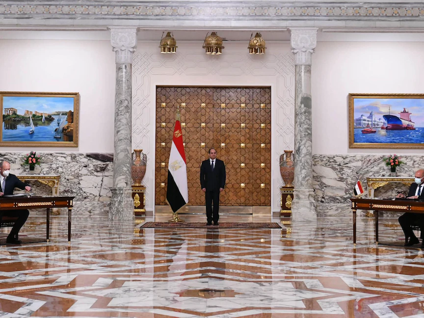 الرئيس المصري عبدالفتاح السيسي يشهد توقيع عقد إنشاء قطار كهربائي سريع مع شركة سيمنس، القاهرة، مصر- 28 مايو 2022 - صفحة الرئاسة المصرية على فيسبوك https://www.facebook.com/Egy.Pres.Spokesman/