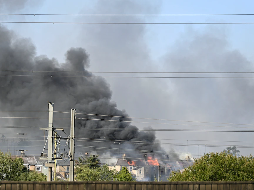 وفي قرية وينينجتون على مشارف شرق لندن دُمرت عدة منازل وتضررت منازل أخرى بشدة بعد اندلاع حرائق اجتاحت الممتلكات.
