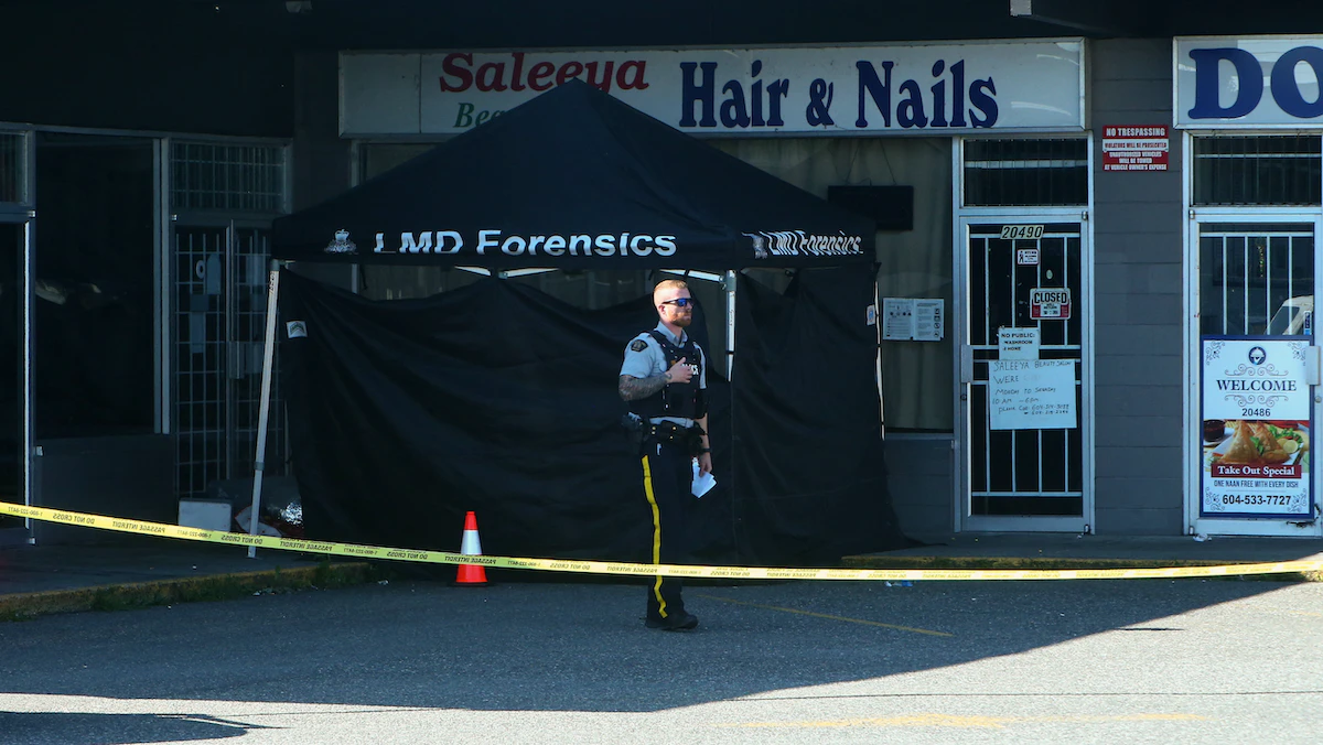 ضابط تابع للشرطة الكندية قرب مسرح جريمة بعد وقوع حوادث إطلاق نار في ضاحية لانجلي بمقاطعة كولومبيا البريطانية - 25 يوليو 2022 - REUTERS