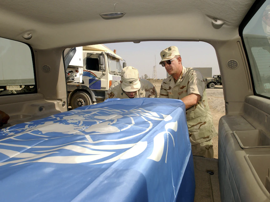 في 19 أغسطس 2003، هزّ تفجير انتحاري مقر الأمم المتحدة في بغداد، ما أدى إلى قتل الممثل الخاص للأمين العام للأمم المتحدة في العراق سيرجيو فييرا دي ميلو مع 22 شخصاً آخرين.