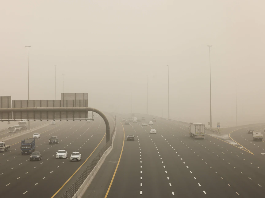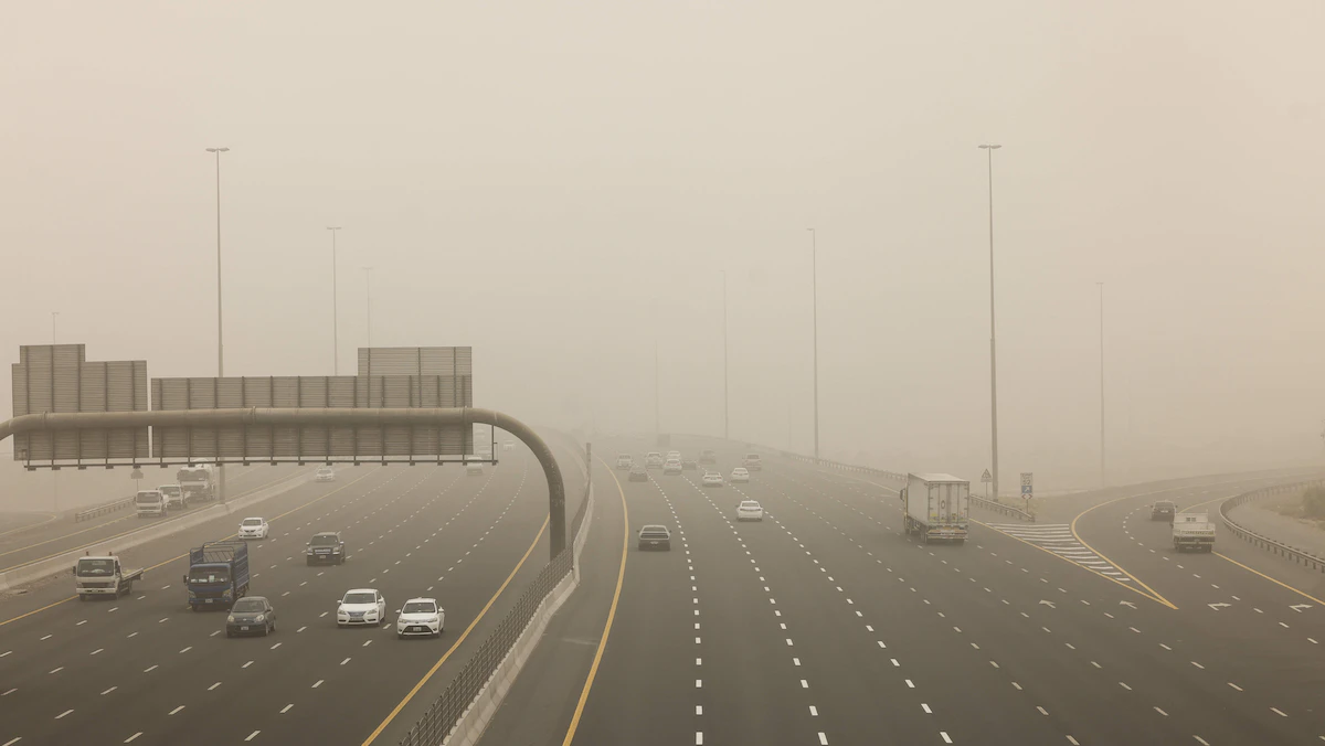 ونبهت شرطة أبوظبي، الأحد، السائقين، إلى ضرورة توخي الحذر بسبب انخفاض الرؤية الأفقية أثناء تشكل الغبار والأتربة، وطالبت بعدم الانشغال بالهاتف والتصوير حفاظاً على السلامة.
