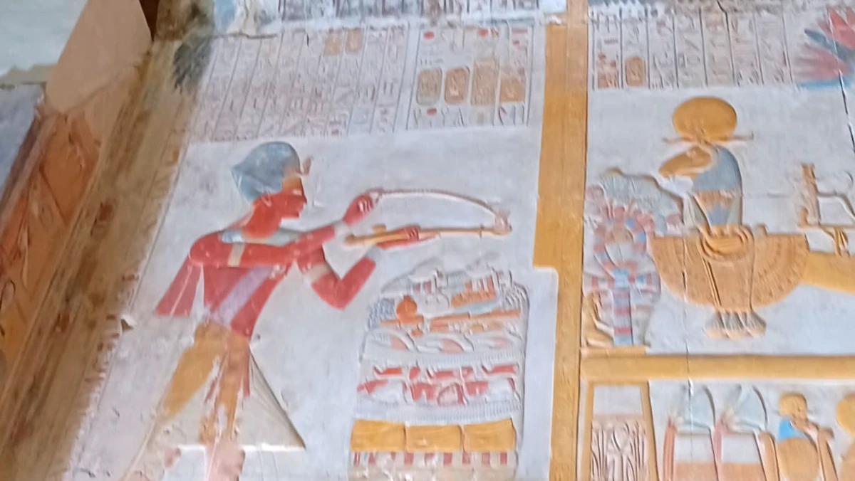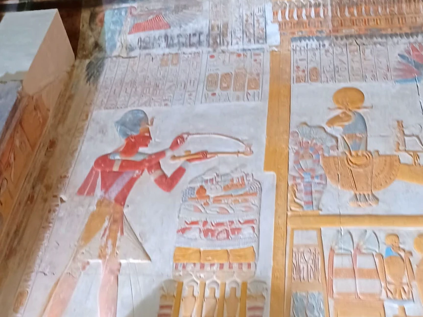 وأوضح أن أعمال الترميم شملت إزالة الإتساخات والسناج بالتنظيف الميكانيكي وباستخدام الفرش المختلفة لإزالة الأتربة ثم تبعها التنظيف الكيميائي لإزالة طبقات السناج من سقف وجدران المقصورة ثم أعمال استكمال الأجزاء المفقودة من الجدران والسقف وتقوية الألوان ثم المرحلة النهائية وهي مرحلة العزل.