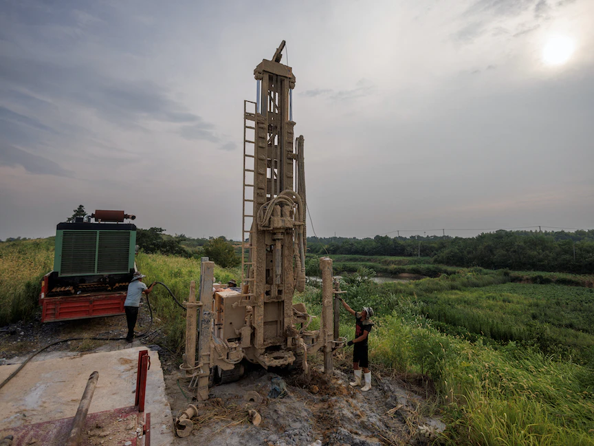 جانب من عمليات حفر الآبار في مدينة جيوجيانغ بإقليم جيانغشي، الصين 27 أغسطس 2022 - REUTERS