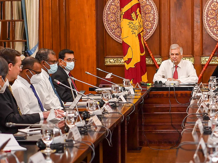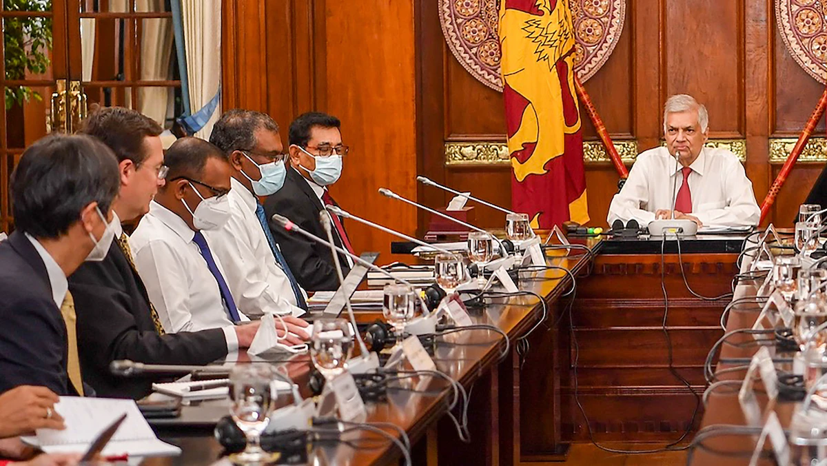 الرئيس السريلانكي رانيل ويكرميسنجه يستقبل بعثة صندوق النقد الدولي في كولومبو. 1 سبتمبر 2022 - AFP