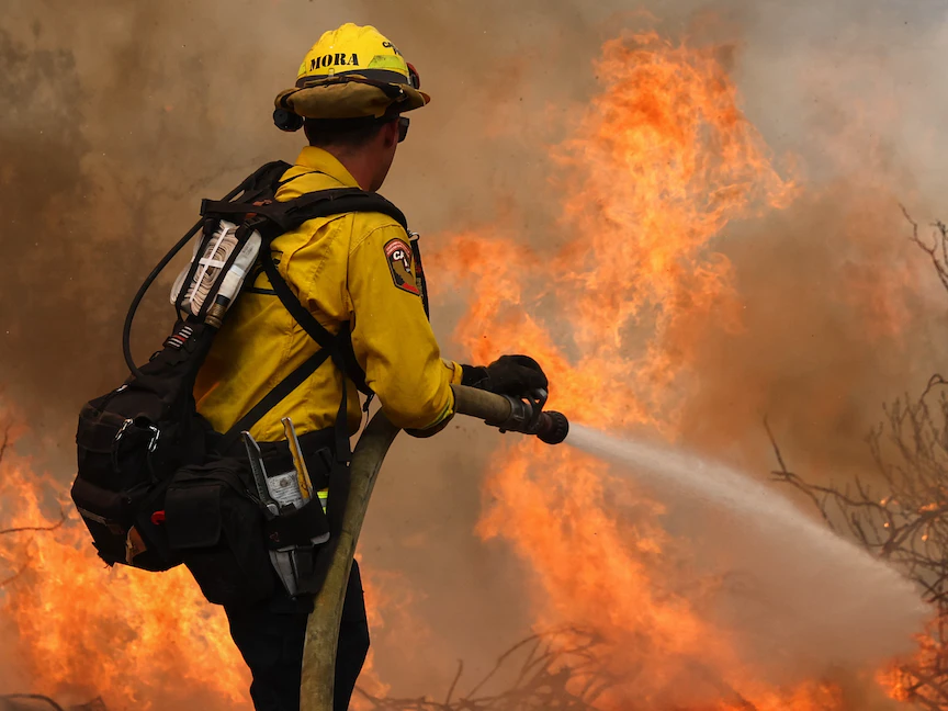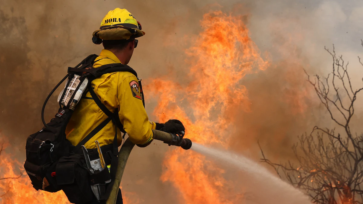 يستعد عناصر الإطفاء والإغاثة الذين يكافحون حريقاً كبيراً في ضواحي مدينة لوس أنجلوس بولاية كاليفورنيا في الولايات المتحدة، لمواجهة خطر جديد مع توقع حدوث فيضانات وسيول ناجمة عن العاصفة المدارية "كاى" القادمة من المكسيك.