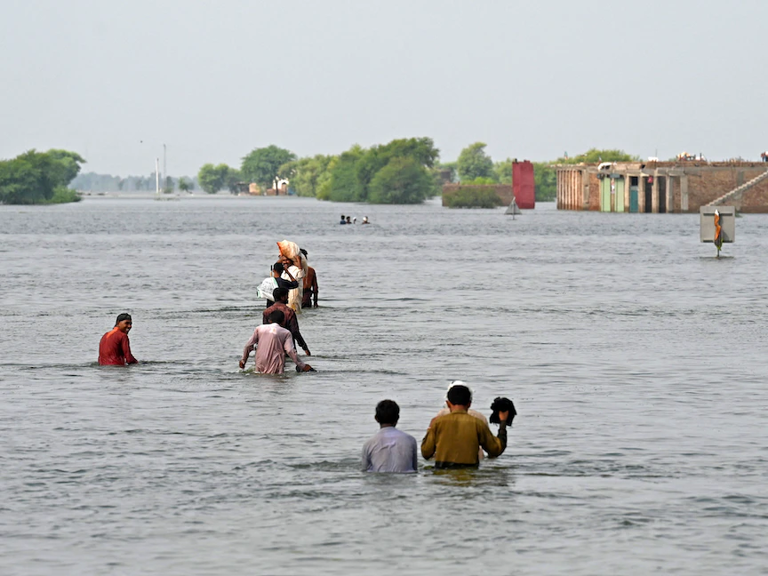 اختفت مئات القرى والمساحات الزراعية في إقليم السند، جنوب باكستان، تحت مياه الفيضانات المدمرة التي قال الأمين العام للأمم المتحدة أنطونيو جوتيريش إنه لم يسبق أن رأى "كارثة مناخية" مشابهة.