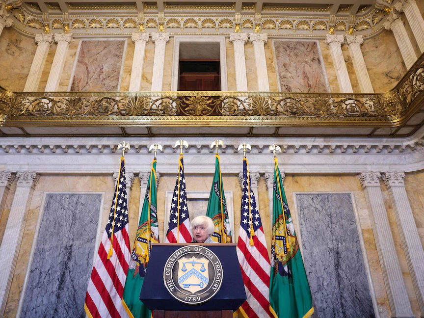 تحدثت وزيرة الخزانة الأميركية جانيت يلين، الأحد، عن "خطر" انكماش اقتصادي في الولايات المتحدة، بسبب "إجراءات اتخذت لإبطاء التضخم ستلقي بثقلها على النشاط الاقتصادي".