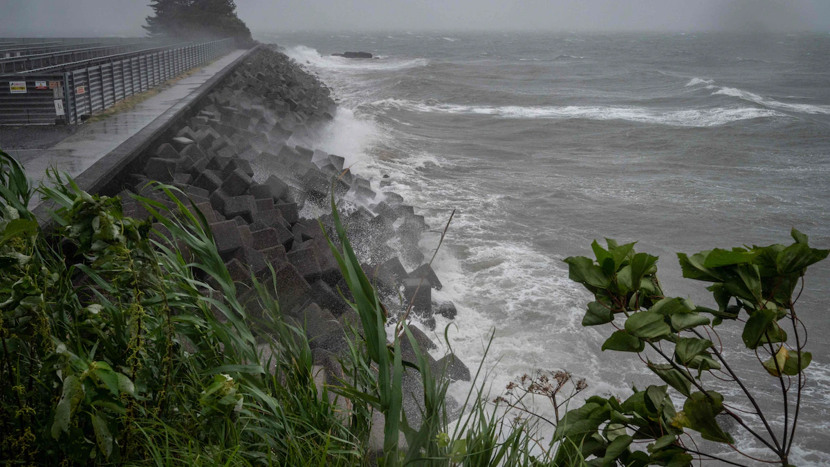 أمواج عالية أحدثها إعصار "نانمادول" في ميناماتا بولاية كوماموتو في جزيرة كيوشو اليابانية. 18 سبتمبر 2022 - AFP
