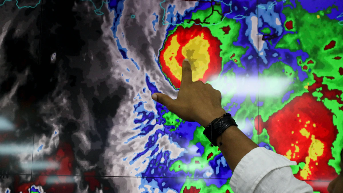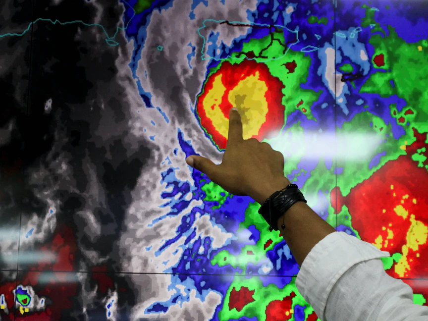 عضو في لجنة عمليات الطوارئ (COE) يرصد مسار إعصار فيونا في سانتو دومينغو. - REUTERS