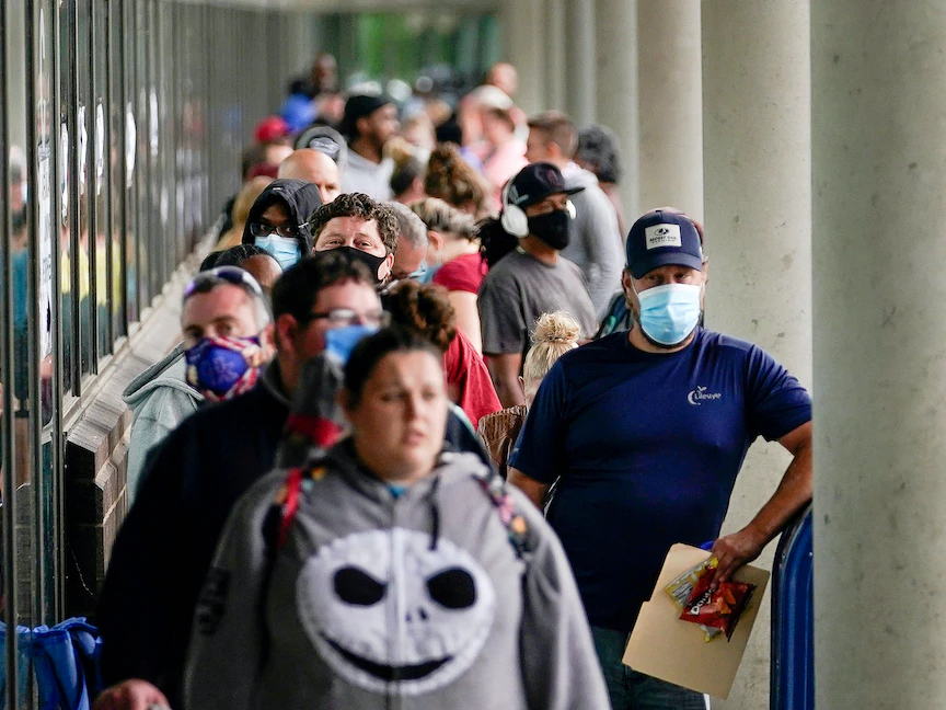 وعصفت الجائحة بالاقتصاد الأميركي في مارس 2020، وفي غضون شهرين تم تسريح أكثر من 20 مليون موظف.