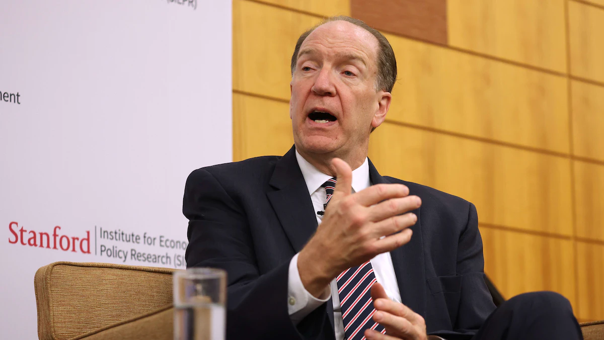 رئيس البنك الدولي ديفيد مالباس يتحدث في معهد ستانفورد لأبحاث السياسة الاقتصادية، 28 سبتمبر 2022. - AFP