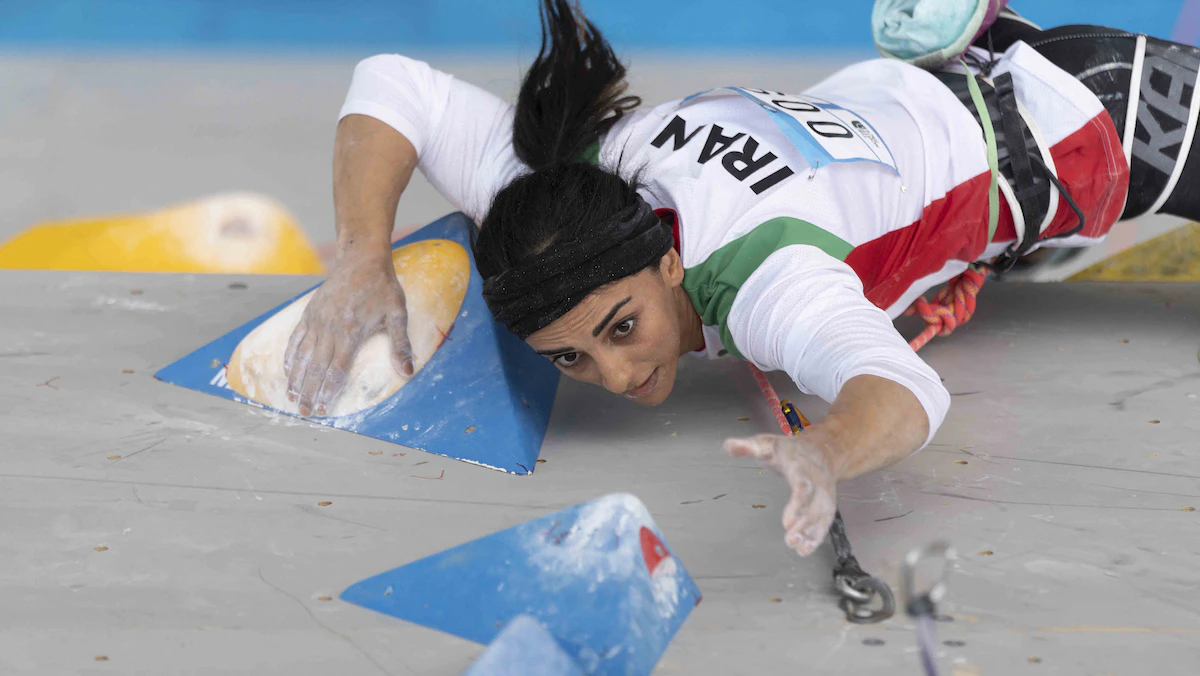 وأظهرت لقطات ركابي (33 عاماً) وهي تتسلق جداراً دون غطاء رأس، خلال منافسات في كوريا الجنوبية ممثلة لإيران، التي تجتاحها احتجاجات أشعلت شرارتها وفاة الشابة مهسا أميني إثر احتجاز "شرطة الأخلاق" لها.