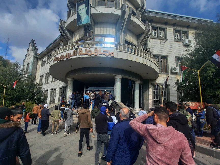 قبل منتصف نهار الأحد، تجمع عشرات الأشخاص وسط مدينة السويداء استجابة لدعوات للاحتجاج انتشرت خلال الأيام الماضية عبر مواقع التواصل. رفع المحتجون شعارات تطالب بتحسين الأوضاع المعيشية، إذ يعاني السكان ظروفاً اقتصادية قاسية جراء غياب الخدمات الرئيسية والغلاء الفاحش وتراجع مستوى الدخل.