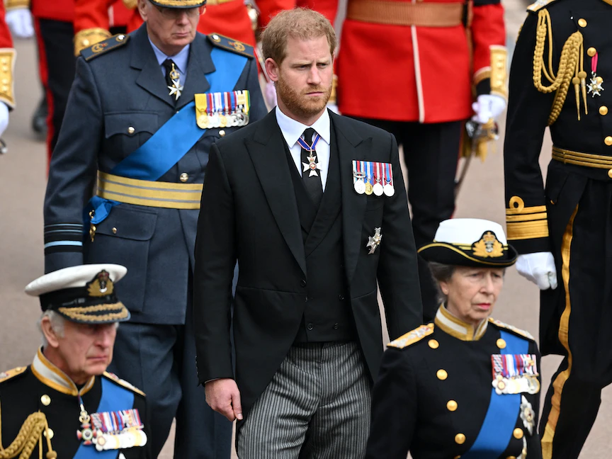 ووجه هاري سلسلة من الاتهامات لأعضاء عائلته، واصفاً شقيقه بأنه "عدوه اللدود"، واتهمه بمهاجمته جسدياً في مطبخه، كما زعم أن الملك رفض السماح لزوجته ميجان ماركل بالمجيء معه إلى قصر بالمورال بينما كانت الملكة إليزابيث الثانية تُحتضر، مما دفع الدوق للرد عليه قائلاً: "لا تتحدث أبداً عن زوجتي بهذه الطريقة"، فاضطر الملك إلى تقديم اعتذار.