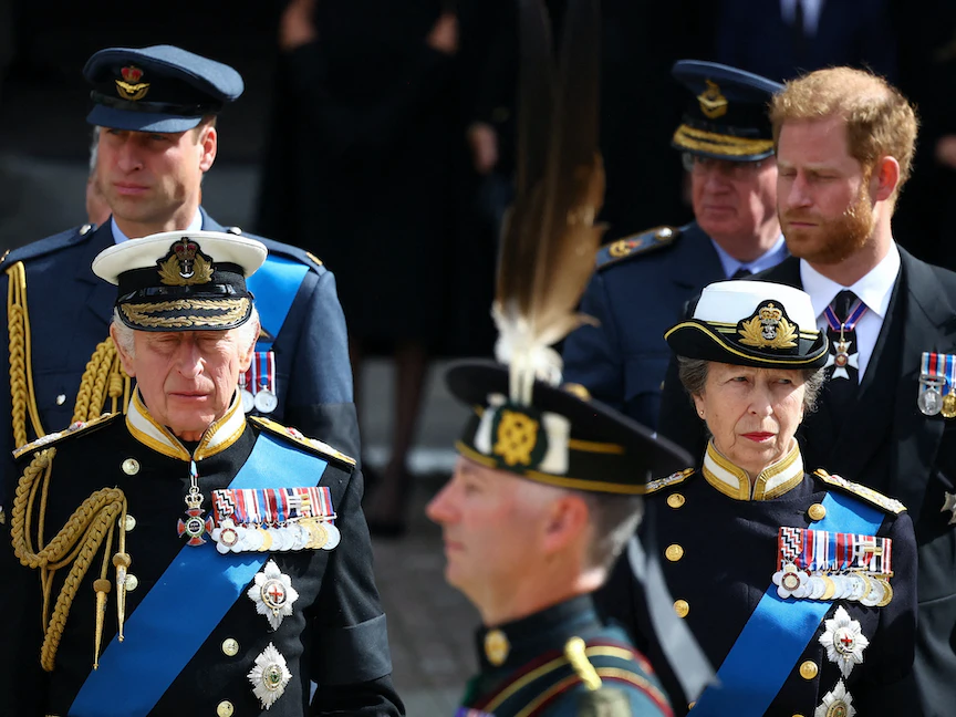 ورجحت الصحيفة أن الملك المستقبلي آنذاك (تشارلز)، ربما كان يحاول تهدئة الأجواء بين نجليه، اللذين وقفا على جانبيه "بوجوه محمرة من الغضب"، بحسب الأمير هاري في مراسم جنازة الملكة إليزابيث.