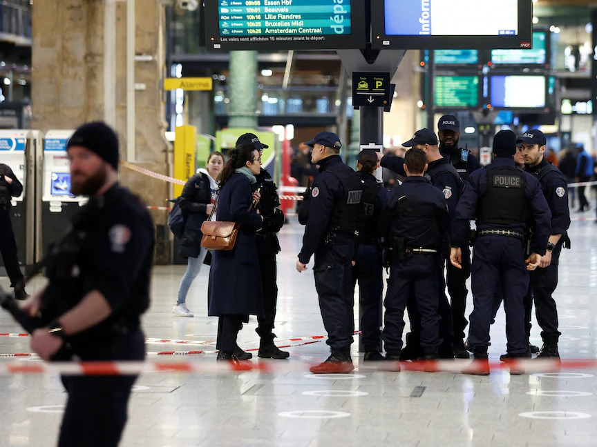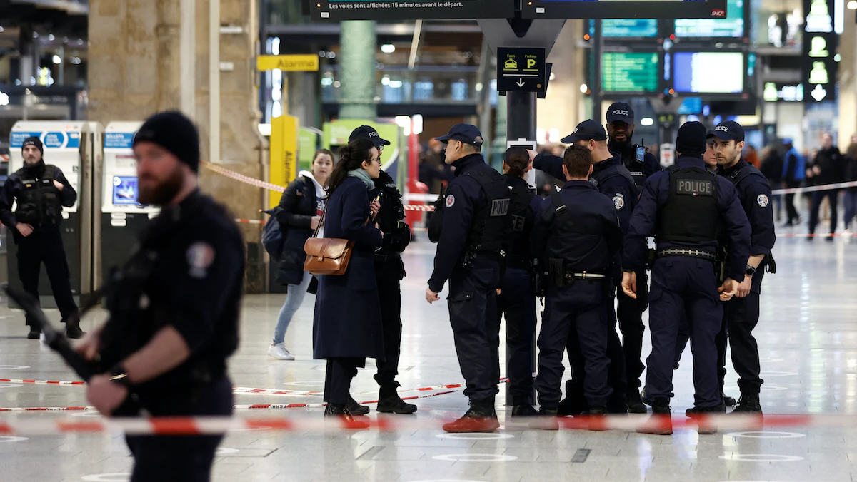 الشرطة الفرنسية تؤمن محطة قطار "جار دو نورد" في باريس بعد إصابة عدة أشخاص على يد رجل يحمل سكيناً. 11 يناير 2023 - REUTERS