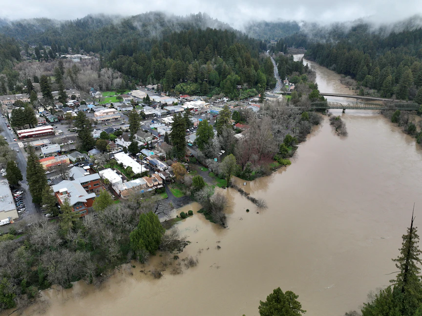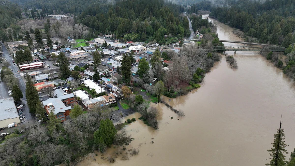 والسبت، انهمرت على سواحل الولاية المطلة على المحيط الهادئ أمطار غزيرة، ما أدى إلى فيضان مجارٍ مائية عدة، فغمرت المياه مناطق سكنية ومنازل وأراضي زراعية كانت قد عانت لفترة طويلة من الجفاف.