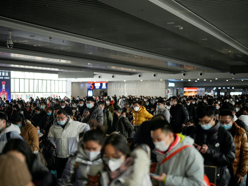 وذكرت وسائل الإعلام الحكومية أنه من المتوقع أن يسافر نحو 390 ألف مسافر من محطات قطار شنغهاي، الثلاثاء، فقط لقضاء عطلة عيد الربيع التي يُنظر إليها على أنها أكبر حركة سفر سنوية في العالم قبل الجائحة.